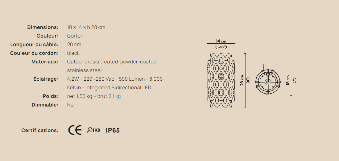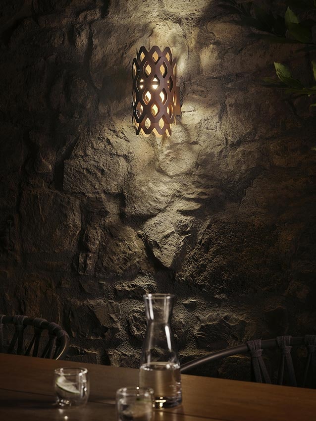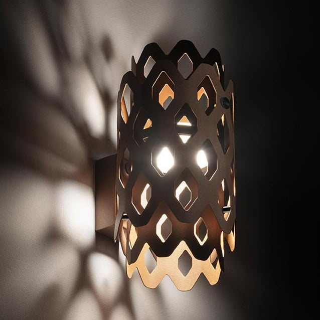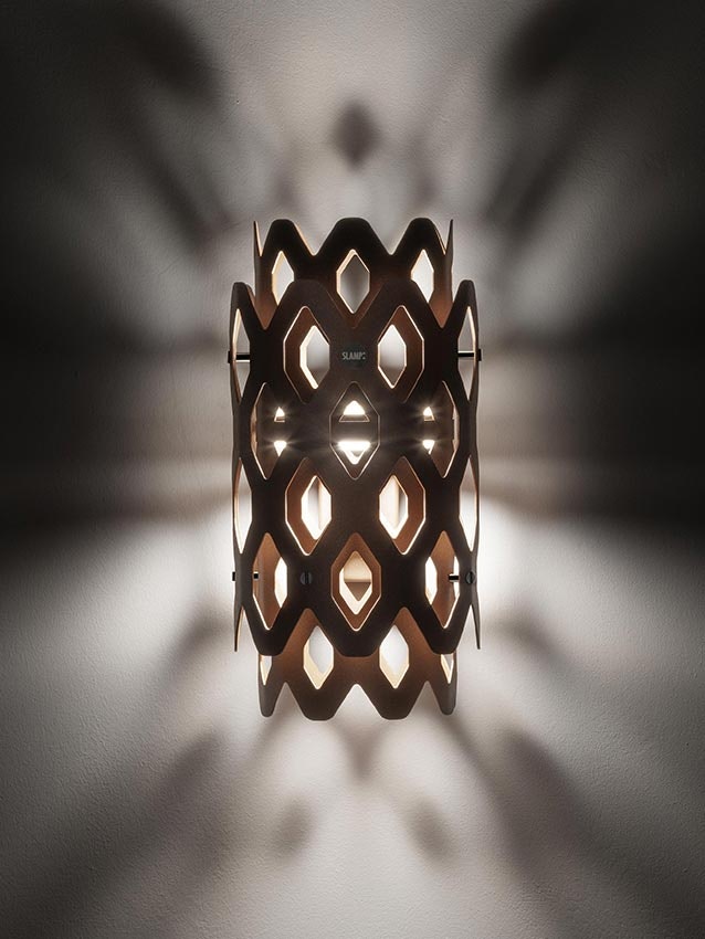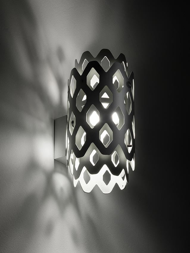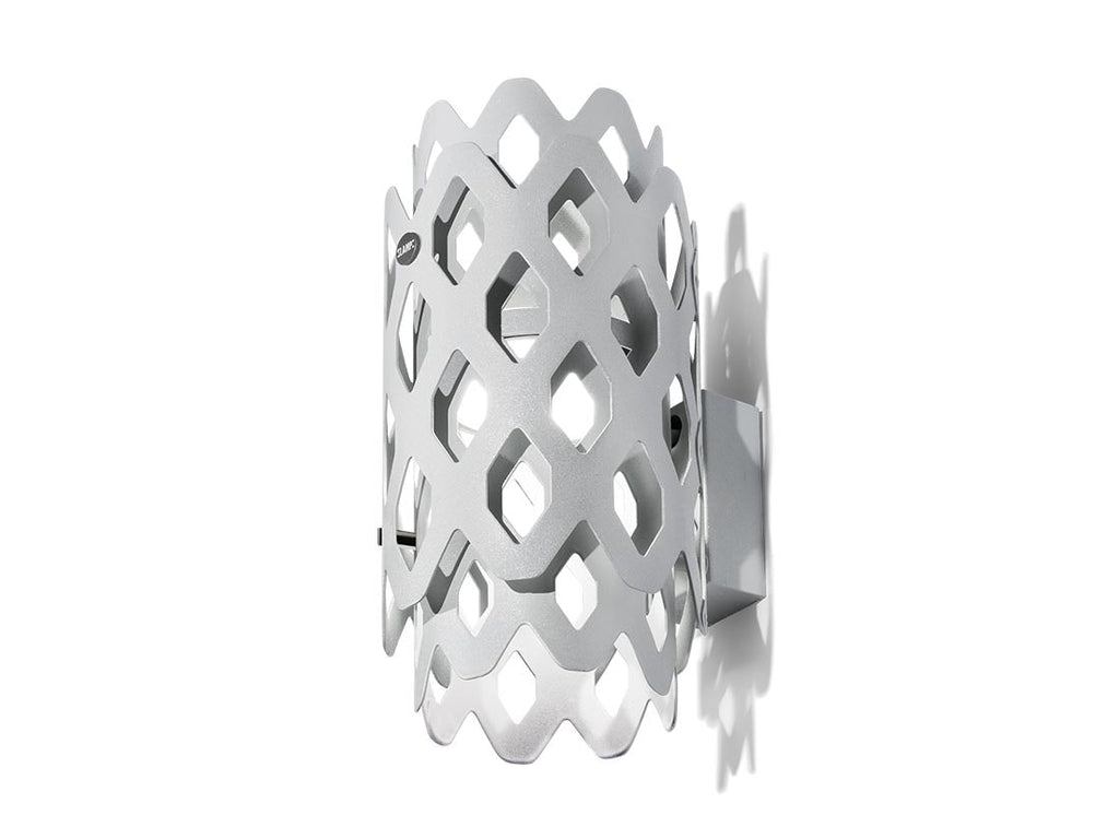 Un laborieux motif en nid d'abeille caractérise le design de Charlotte, la collection iconique signée par Doriana et Massimiliano Fusksas pour Slamp, prête à offrir des perspectives hypnotiques et toujours nouvelles, y compris dans la version extérieure, grâce à sa surface aux formes hexagonales perforées. L'acier traité par cataphorèse et peint par poudrage (Anthracite, Corten ou Light Gray) confère à la Charlotte Applique une résistance maximale aux rayons UV et à la corrosion.