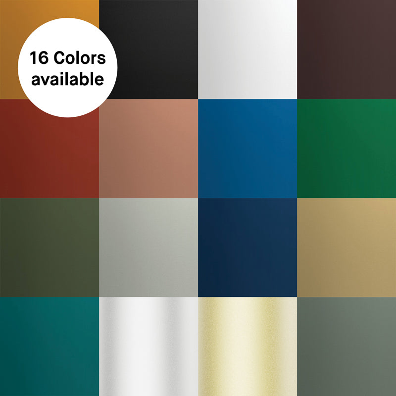 Base en aluminium moulé sous pression, disponible avec 14 choix de finitions texturée et 2 options de finis métalliques (usage intérieur uniquement).